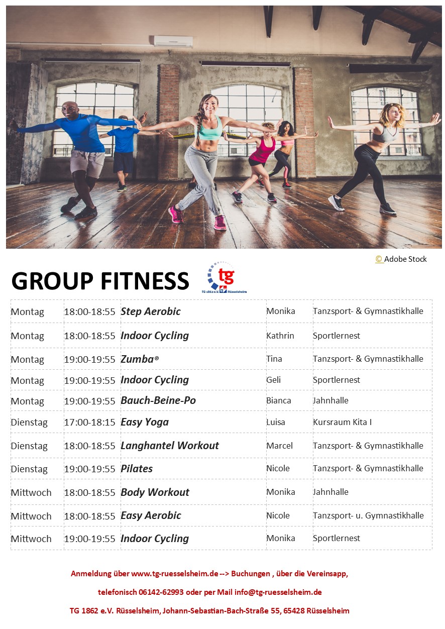 zunächst möchten wir uns herzlich für Eure Treue und Euer Engagement bedanken. Es freut uns sehr, dass so viele von Euch regelmäßig an unserem vielfältigen Group Fitness Angebot teilnehmen.
