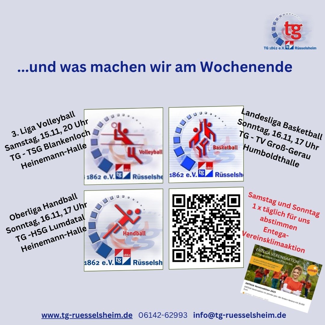 Dies ist nur ein kleiner Ausschnitt aus unserem Sportangebot. Neben den Spielen unserer Klassenhöchsten Teams finden weitere Spiele der verschiedenen Jugend‑, Damen und Herrenteams in unseren Abteilungen Hand,-Basket- sowie Volleyball statt. Infos zu den Spielen findet Ihr unter anderem auf den Abteilungsseiten im Internet.