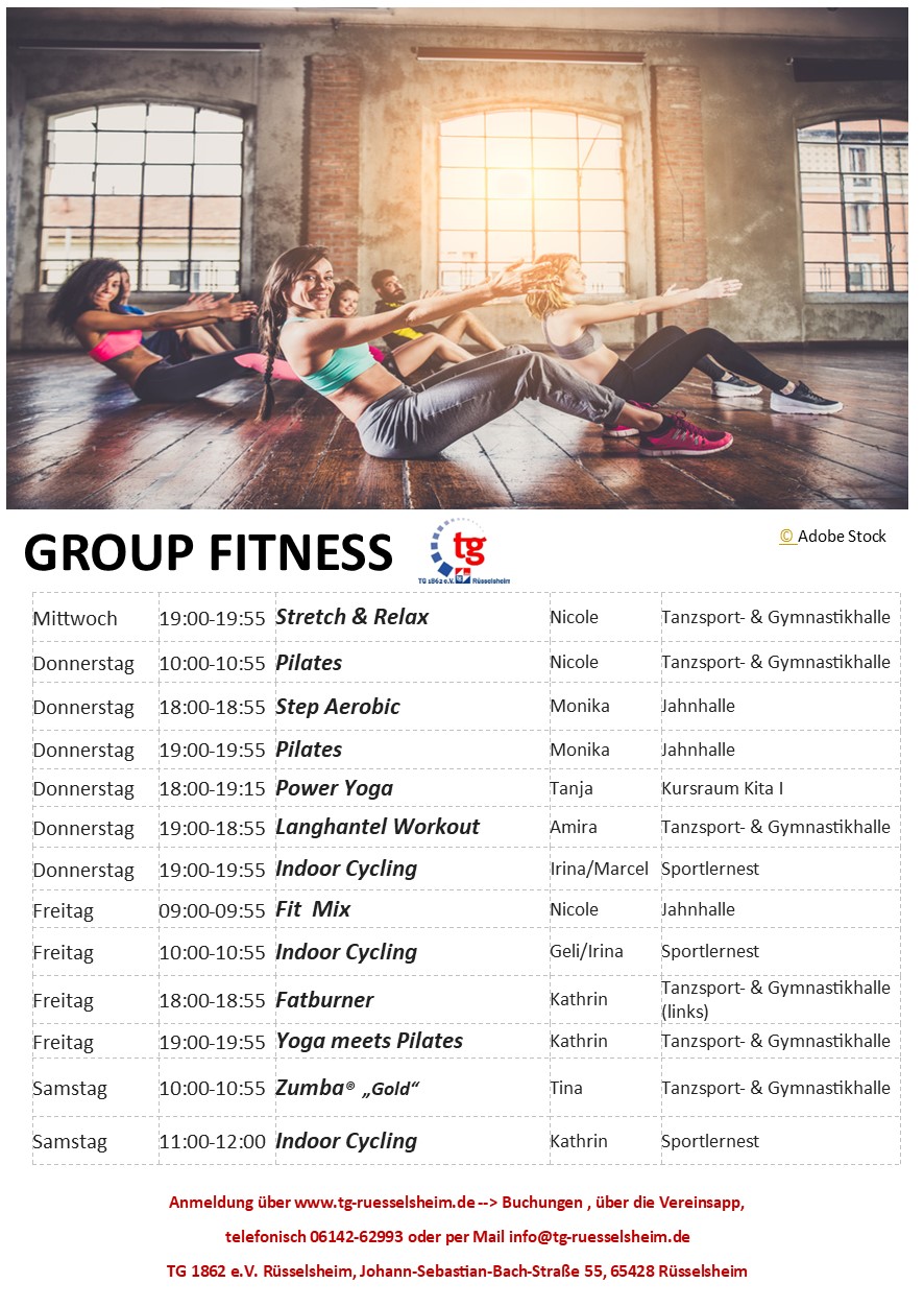 zunächst möchten wir uns herzlich für Eure Treue und Euer Engagement bedanken. Es freut uns sehr, dass so viele von Euch regelmäßig an unserem vielfältigen Group Fitness Angebot teilnehmen.