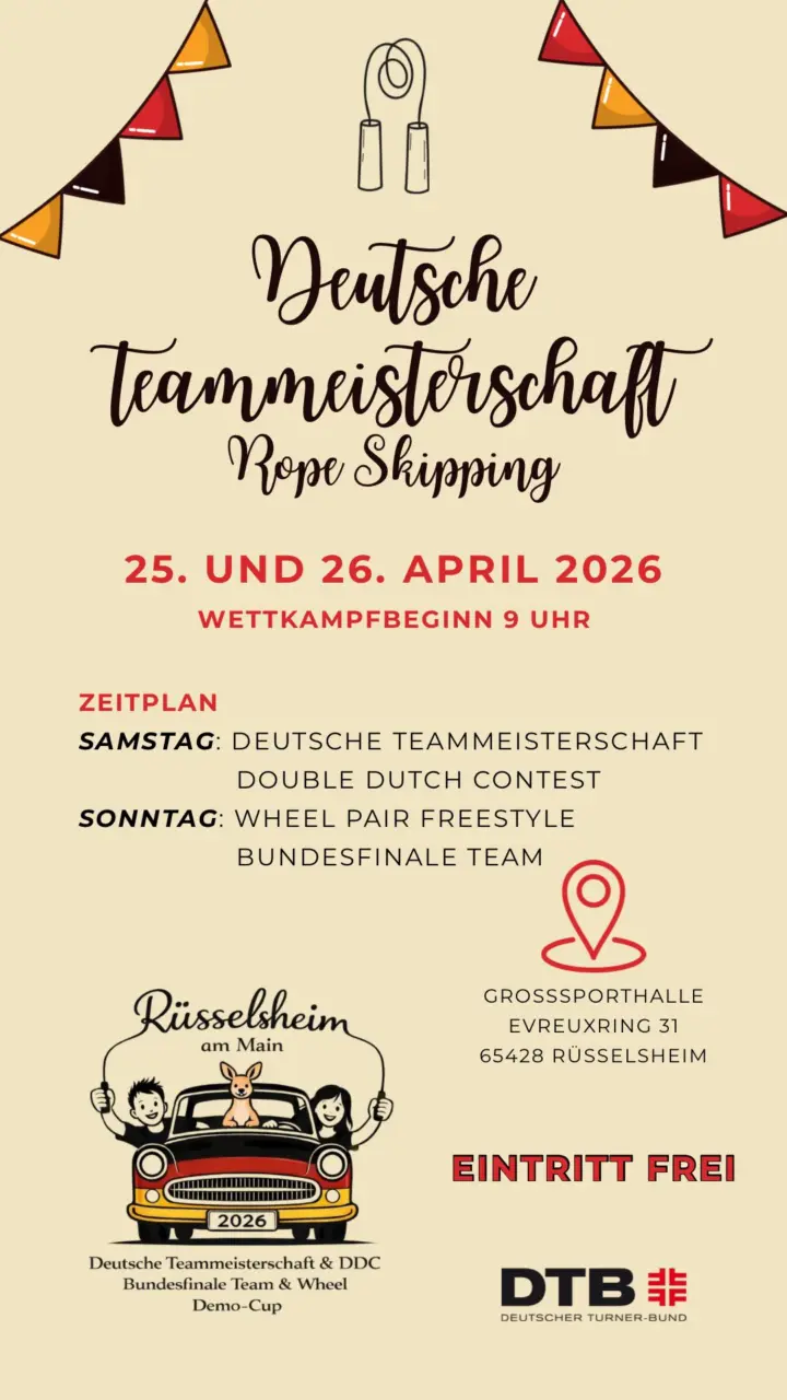 Rope Skipping – Deutsche Meisterschaften in unserer Großsporthalle, 25./26. April 2026