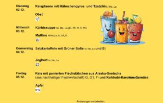 da hat sich der Eintipper mit der dreiwöchigen Speiseplanung im vergangenen Artikel zu früh gefreut. Der Speiseplan für die KW 48 wurde nochmal durcheinandergewirbelt.