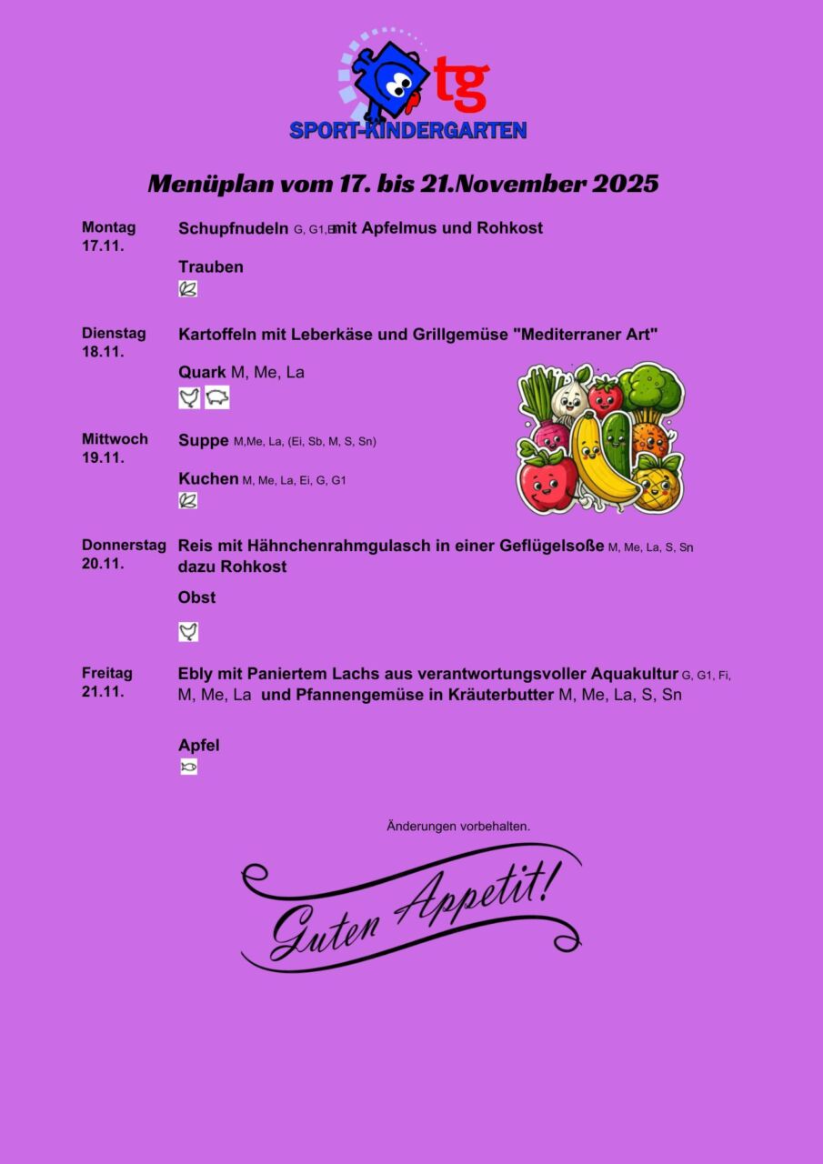 Sportkita – unsere Speisepläne für die KW 48. und 49.