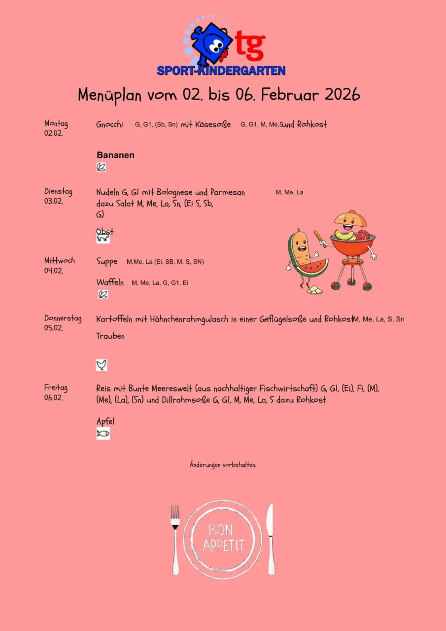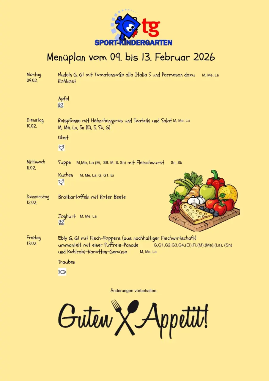 Sportkindergarten – unsere Mittagessen für die KW 6 & 7.