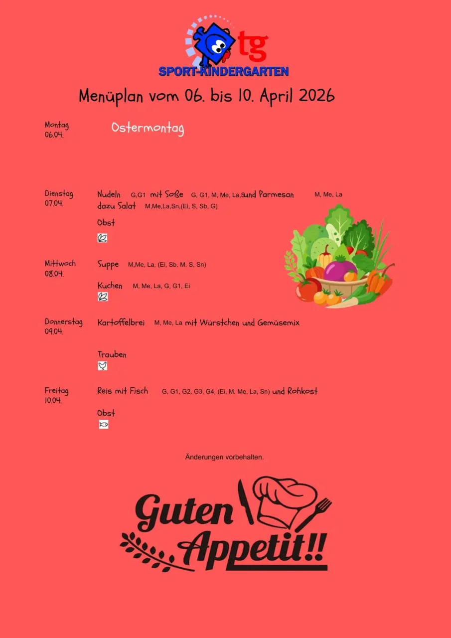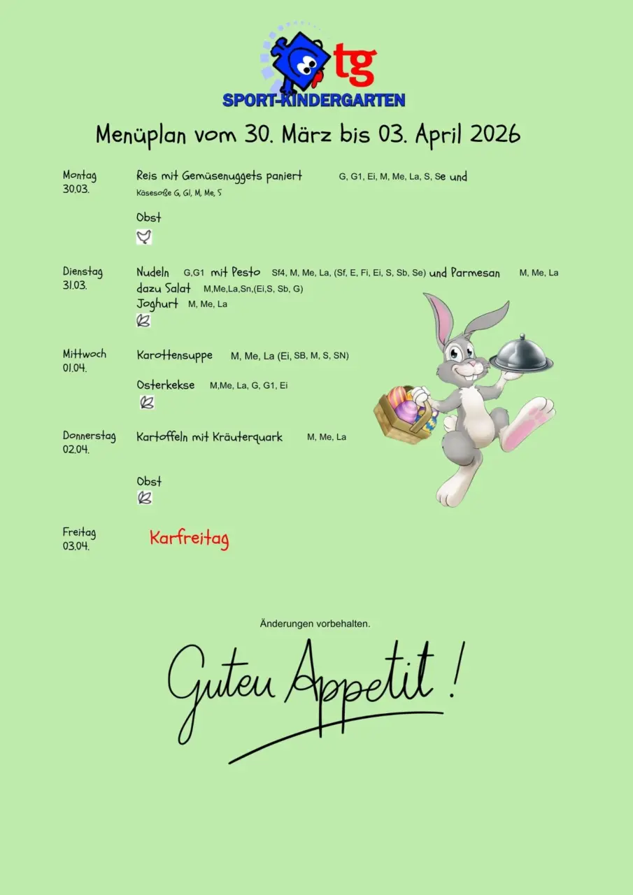 Sportkita – unsere Speiseplände vom 30. März bis 10. April 2026